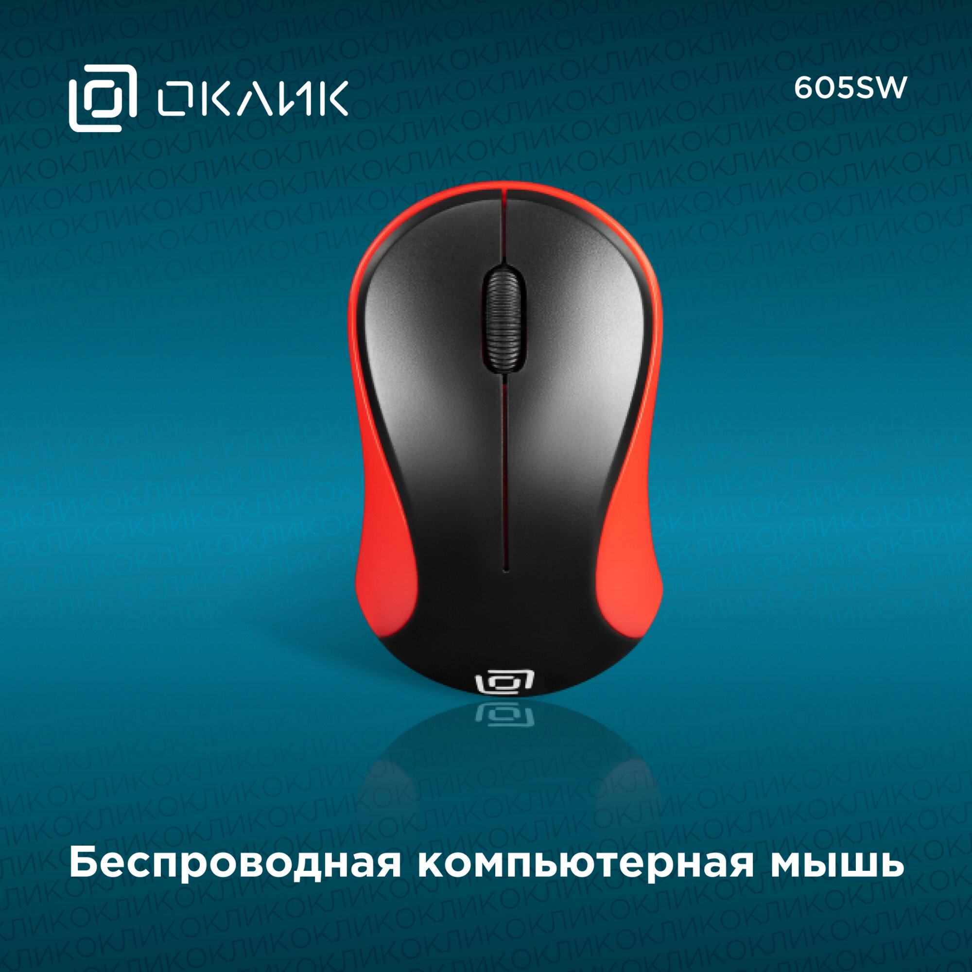 Мышь Oklick 605SW, оптическая, беспроводная, USB, черный и красный [384110]