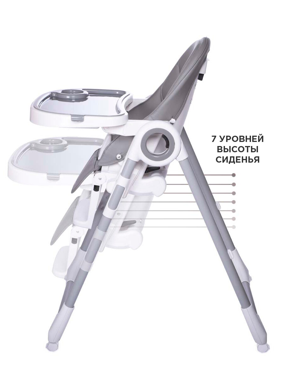 Великолепный стул, ребенку комфортно, готов кататься на нем весь день. Кушать пока не пробовали. У спинки 5 положений, у подставки для ног - 3. Складывается и разбирается за 1 мин, все легко и просто без инструкции.