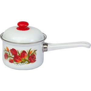 Купить Кастрюля эмалированная Лысьвенские эмали Ласковый май с крышкой и длинной ручкой, белый 1.5л / для всех видов плит