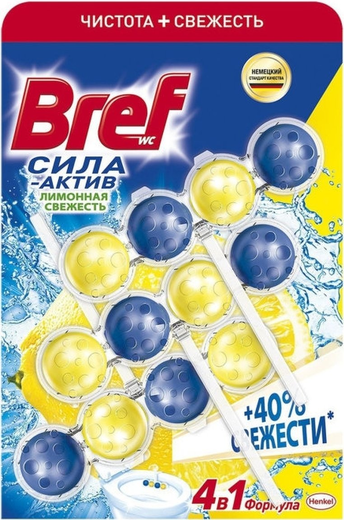 Гигиенический блок для унитаза Bref "Сила-Актив. Лимонная свежесть", 2x50г, блистер (9000100656832)