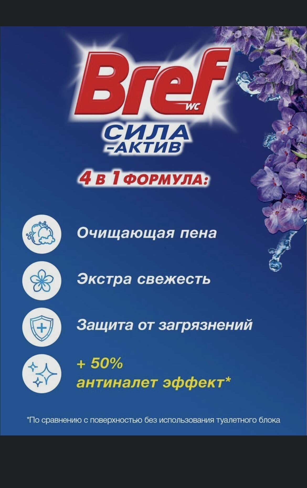 Блок для чистки и свежести унитаза Bref Сила актив 4 в 1 Bref Сила актив "Свежесть лаванды", 3 шт x 50 г