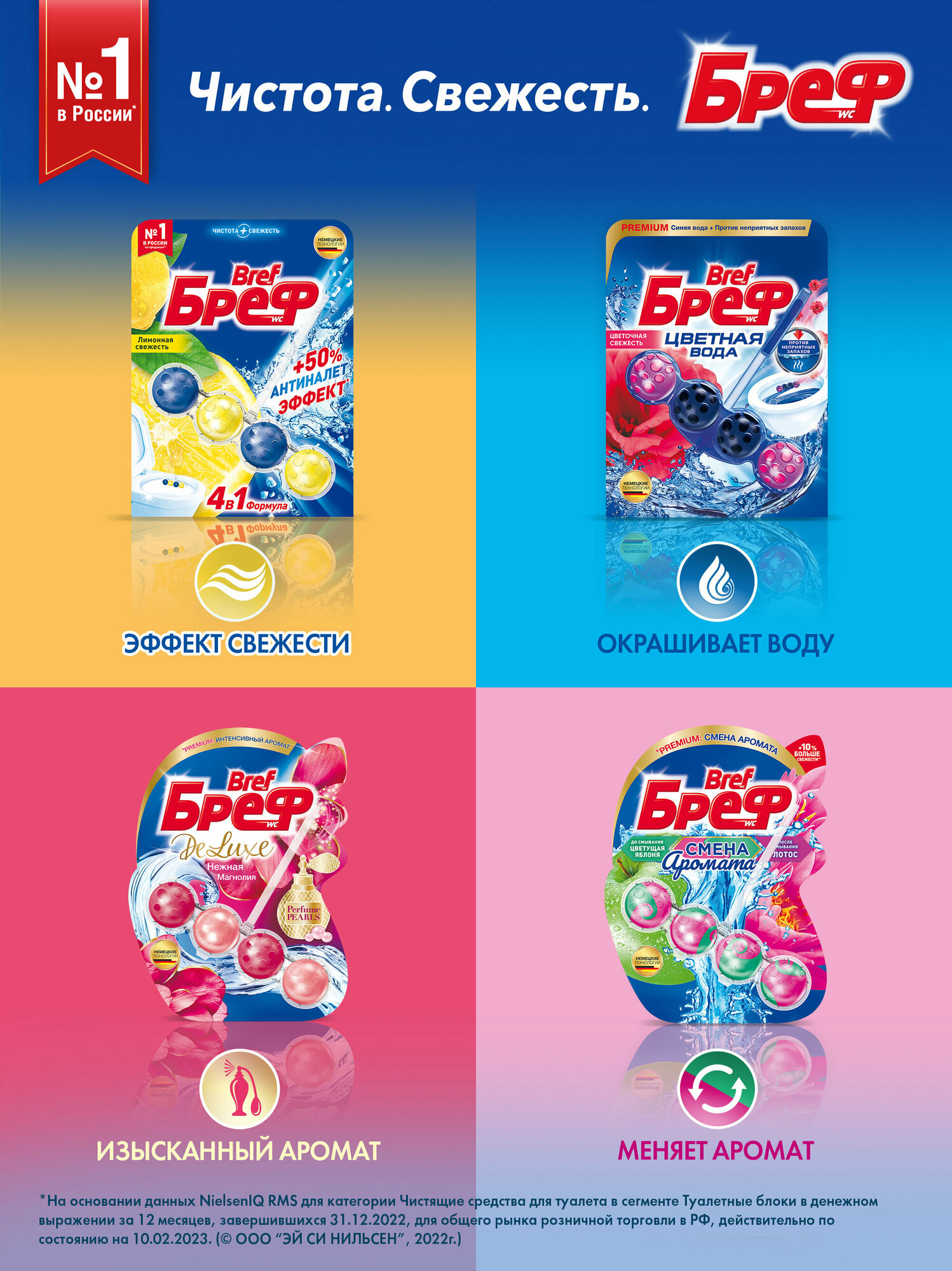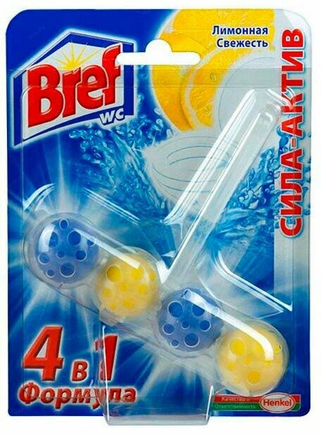 Гигиенический блок для унитаза Bref "Сила-Актив. Лимонная свежесть", 2x50г, блистер (9000100656832)