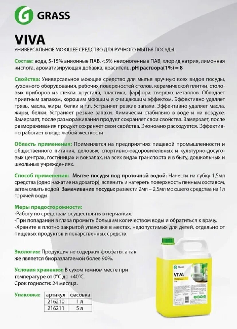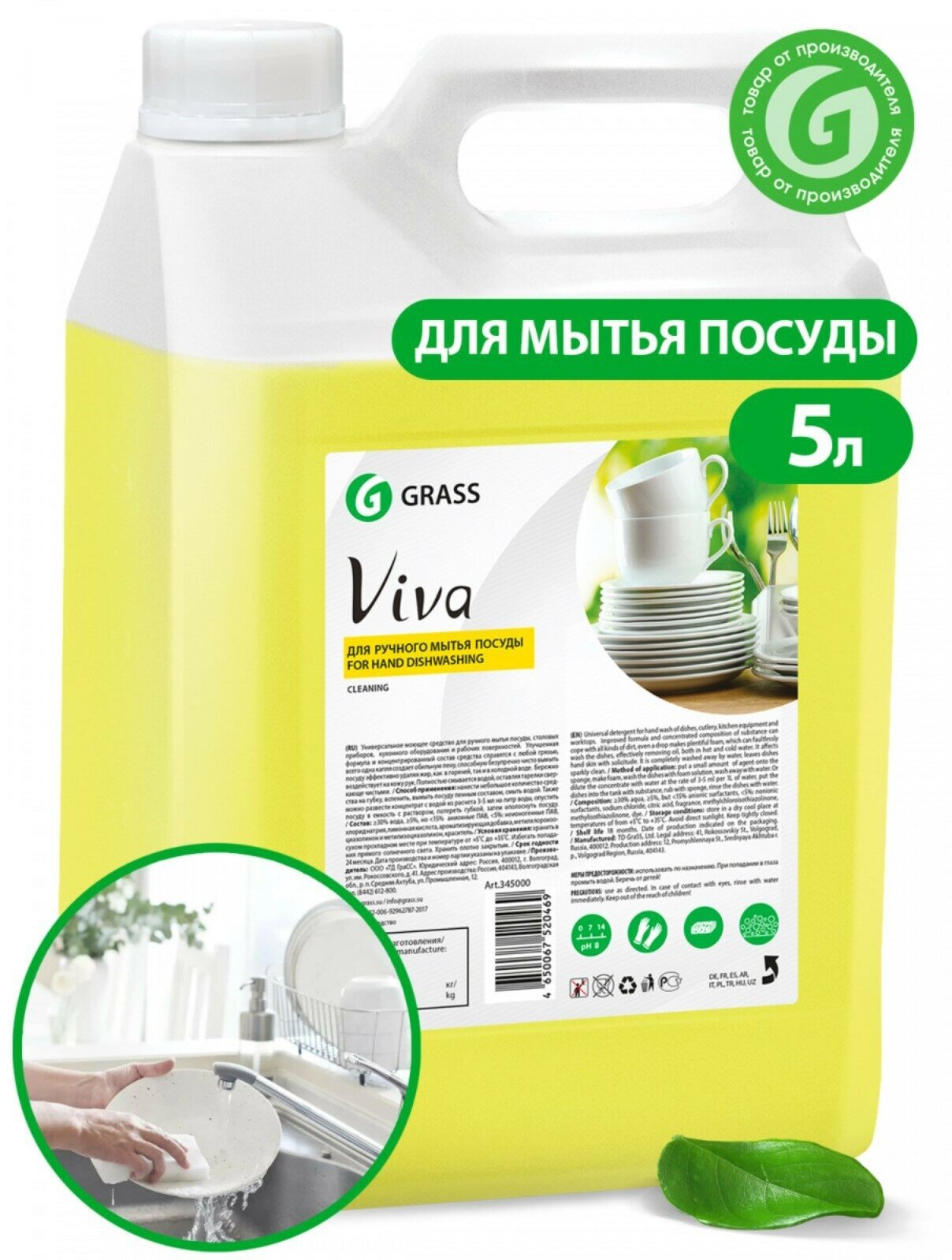 Grass Средство для мытья посуды Viva моющее универсальное гель жидкость для кухни 5л