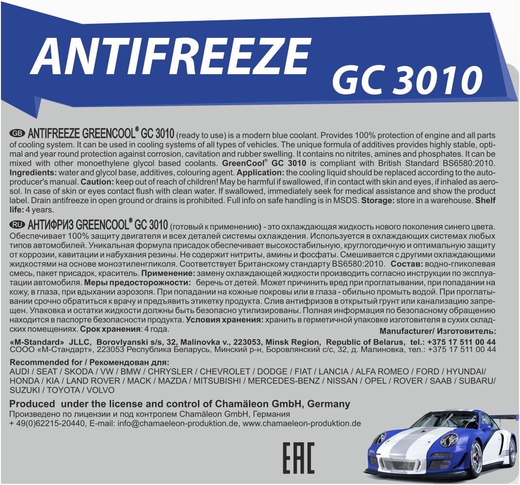Антифриз Greencool Gc3010 G11, 5 Кг (Син.) Mercedes-Benz Glk-Class (X204) 220 Cdi 4-Matic (204.984, 204.997) 12.2008 - 06.201...