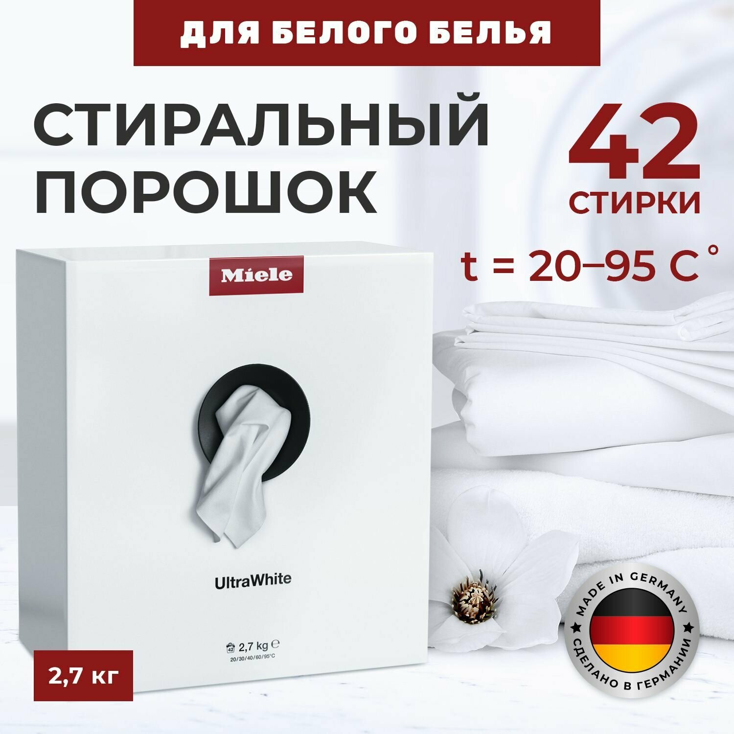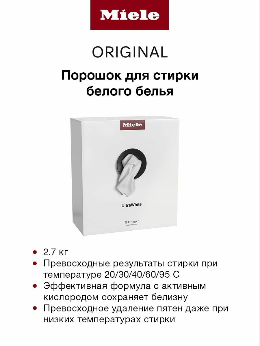 Купить Стиральный порошок Miele ULTRA WHITE для белого белья, картонная пачка, 2.7 кг