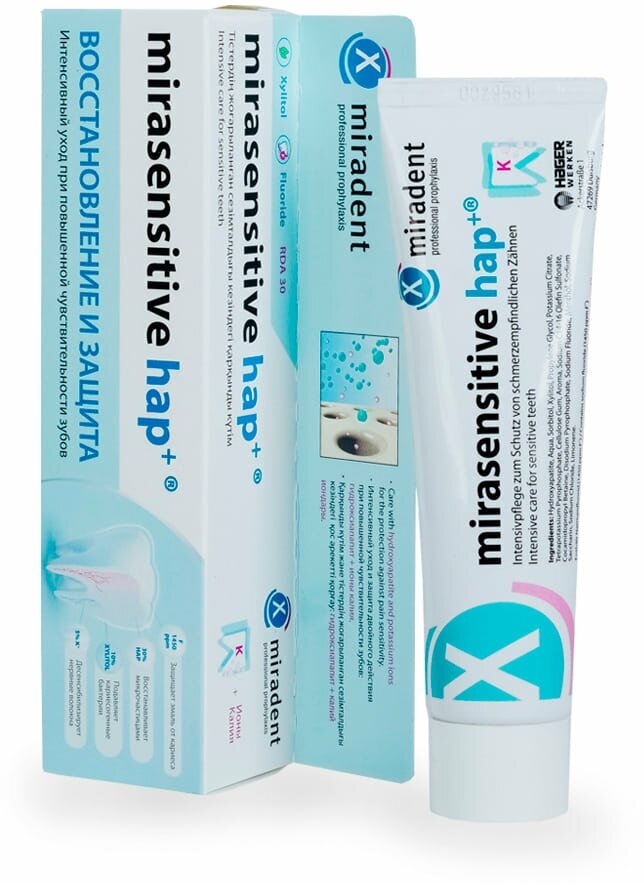 Зубная паста miradent mirasensitive hap+ для чувствительных зубов интересное: