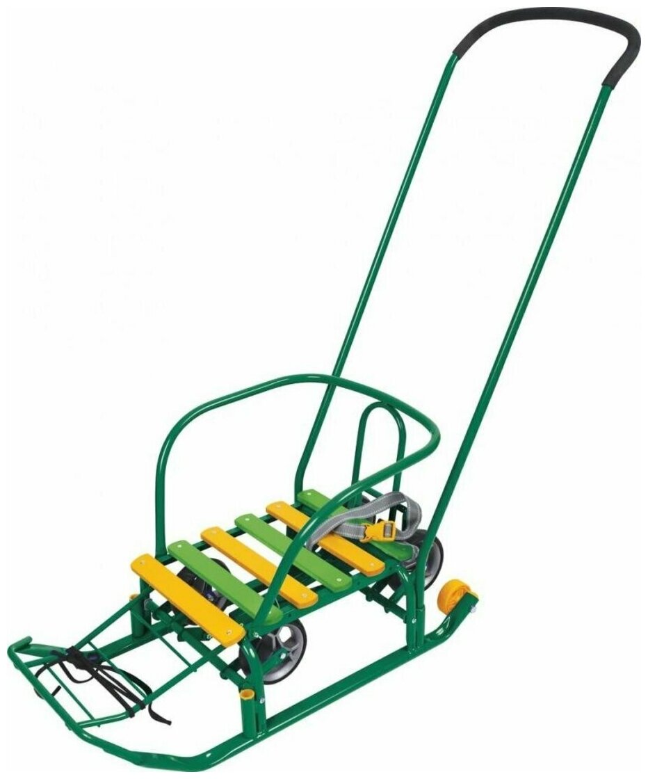 Санки детские Ника Тимка Т3К Универсал+ с колёсиками, спинкой и родительской ручкой, зелёные
