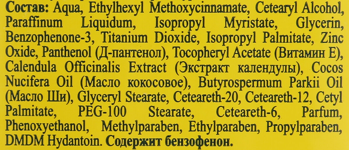 Молочко для защиты от солнечных лучей и получения красивого,ровного загара.Комплекс UVA/UVB фильтров и Д-пантенол обеспечивают нежную защиту от ожогов и покраснения кожи во время пребывания на солнце.Масло ши и экстракт календулы тонизируют кожу,восстанавливают ее упругость и эластичность,препятствует обезвоживанию эпидермиса.Водостойкое. Способ применения : наносить на чистую,сухую кожу лица и тела перед принятием солнечных ванн.Повторить процедуру после двух-трёх водных процедур. |
