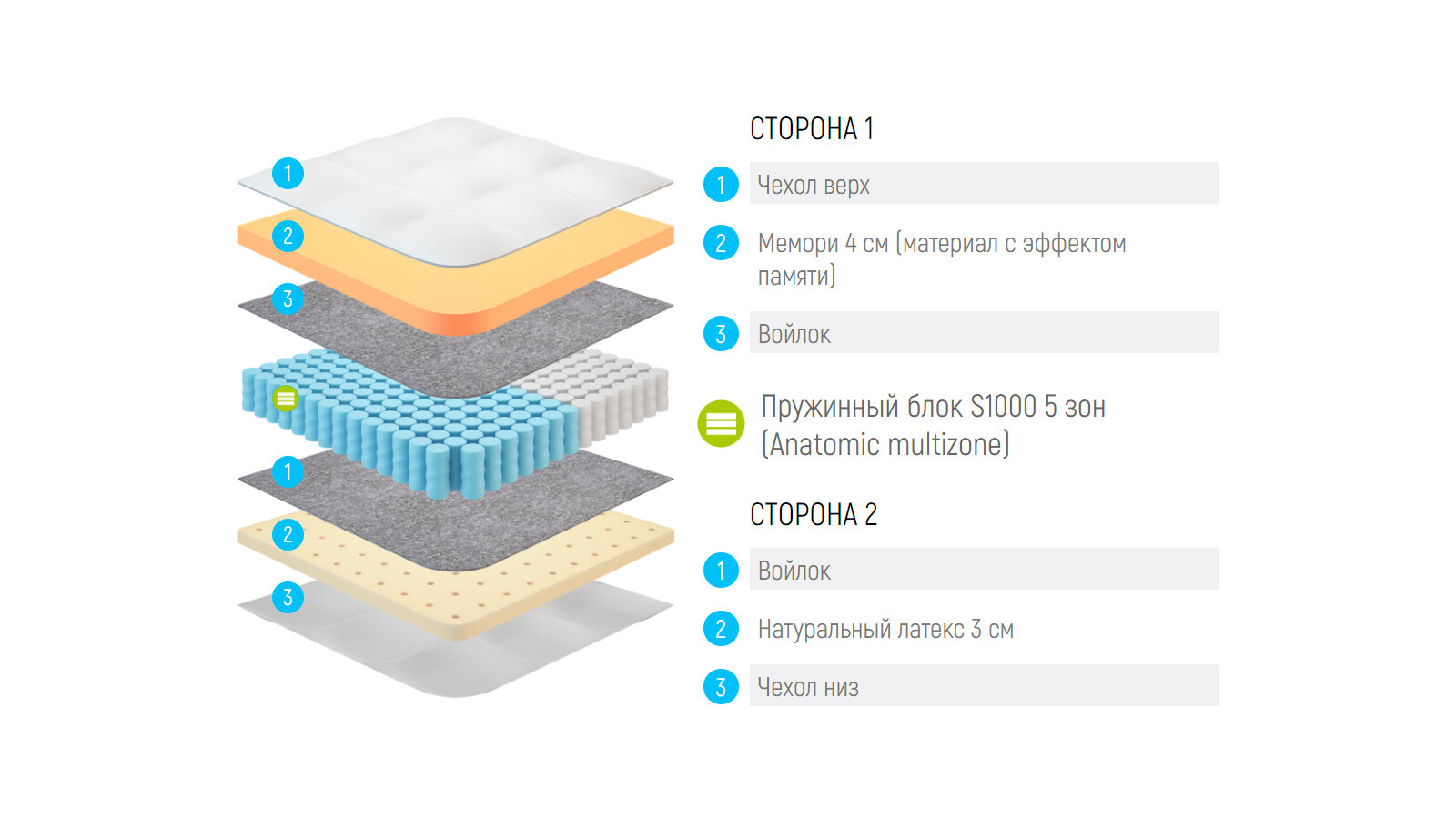 | Плюсы: | 2 стороны разной жёсткости, но какая латекс или мемори на матрасе не написано)) |