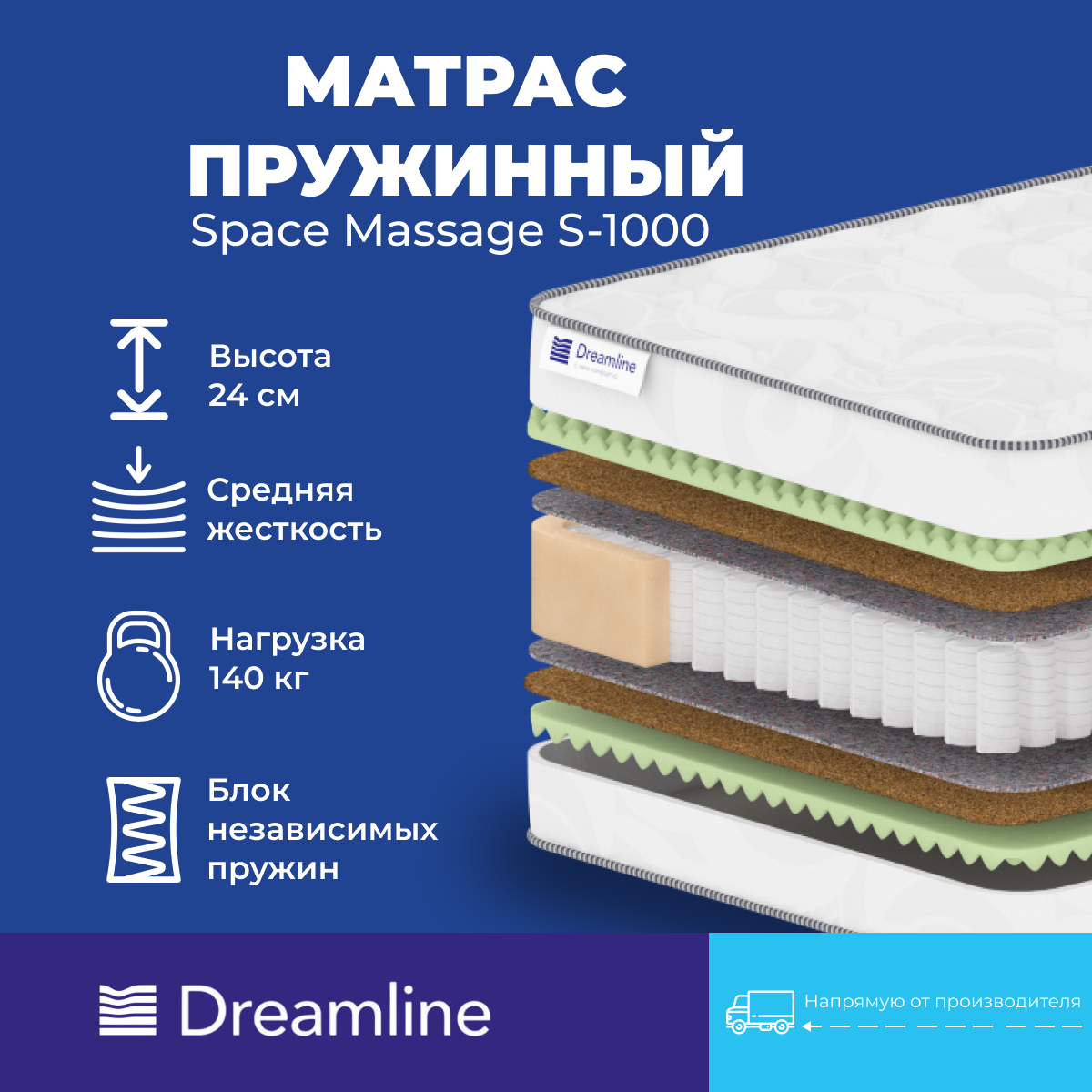 Купить Матрас Дримлайн Space Massage S-1000 (х/б жаккард) 130х220х24