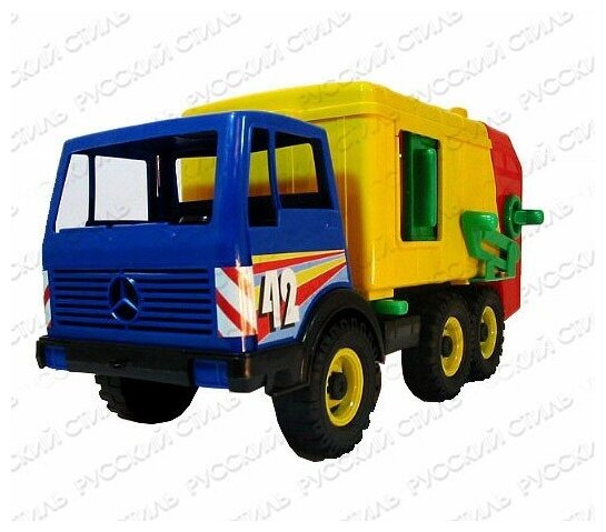 Мусоровоз лена Мерседес (08812), 45 см, синий/желтый/красный