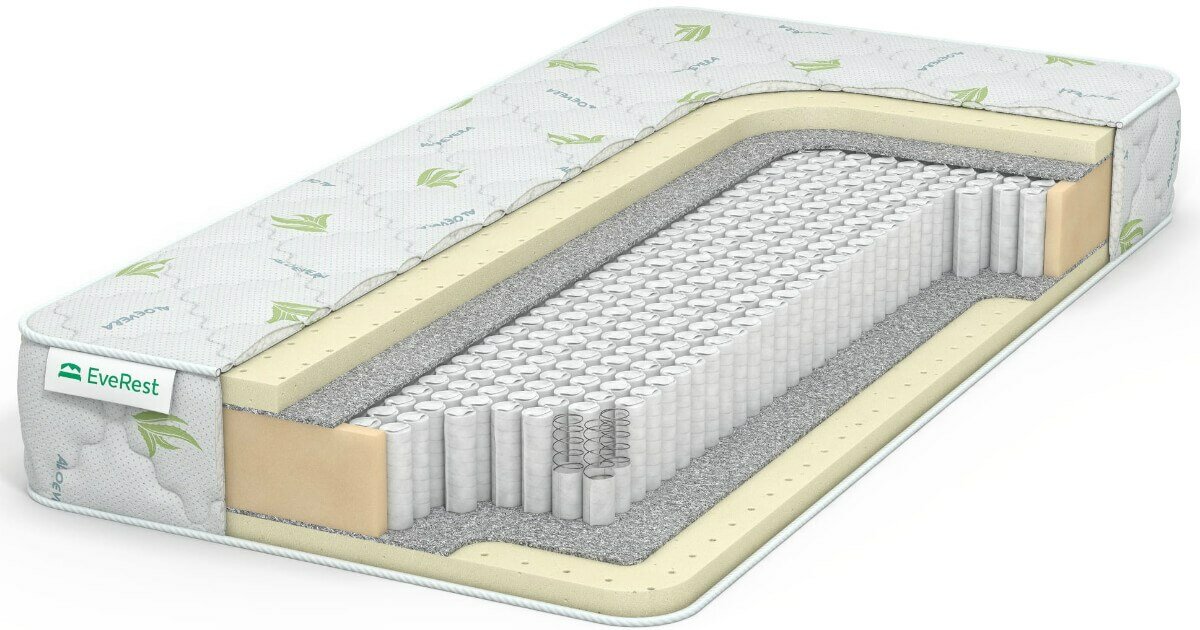 Матрас Everest Софт Латекс 30 S-1000 75х180 см, независимый пружинный блок S1000, трикотажный чехол Aloe Vera