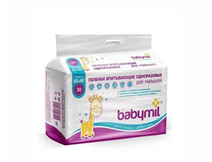 BabyMil Пеленки впитывающие одноразовые для малышей 60*60 см.(упаковка 30 штук)