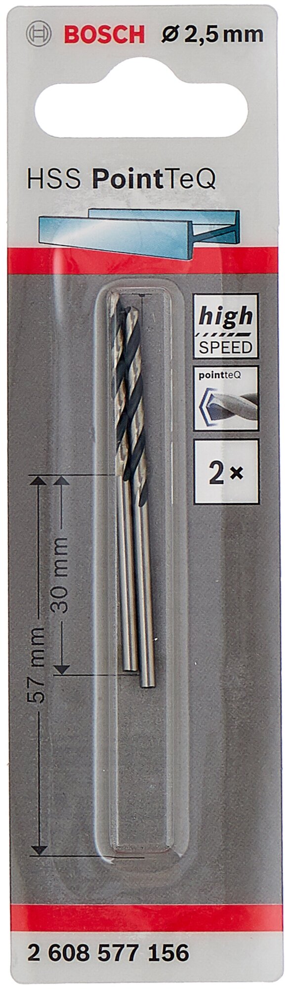 Сверло спиральное по металлу PointTeQ (2 шт; 2.5х30х57 мм) Bosch 2.608.577.156 интересное: