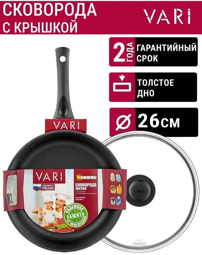 VARI Сковорода литая "Natura" с антипригарным покрытием, D26см,, с крышкой N31126/12 интересное: