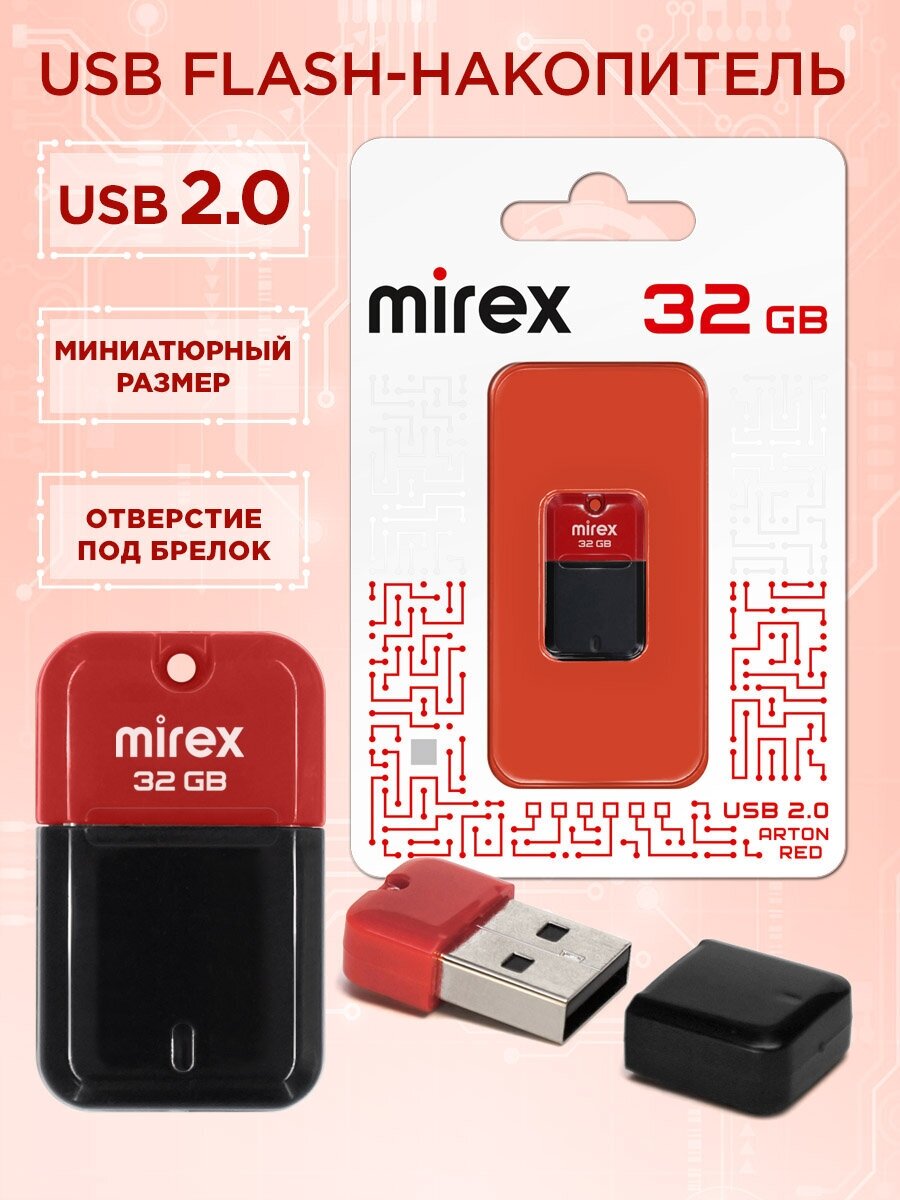 Флешка Mirex Arton Red 32 Гб usb 2.0 Flash Drive - красный