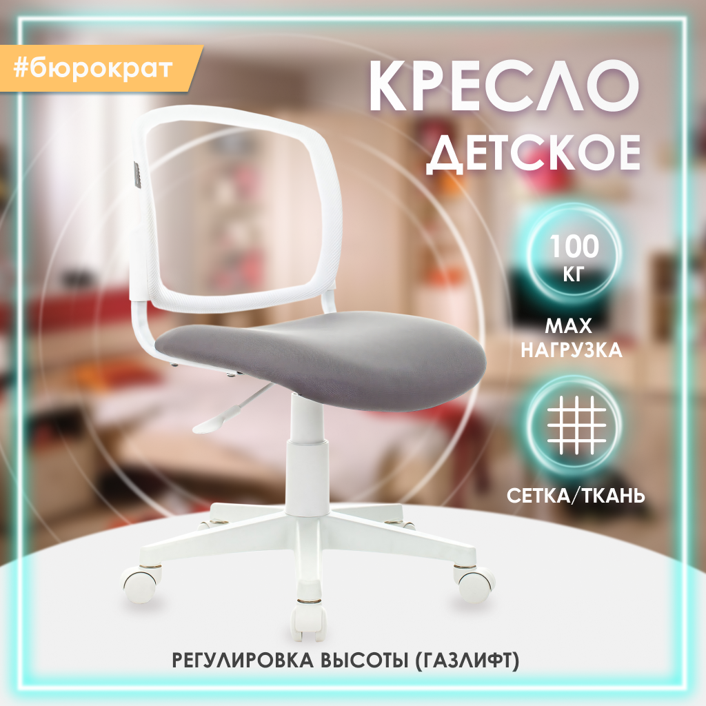 Кресло детское, серое, белое, сетка, ткань, крестовина пластик - Кресло Бюрократ компьютерное мягкое для ребенка, школьника