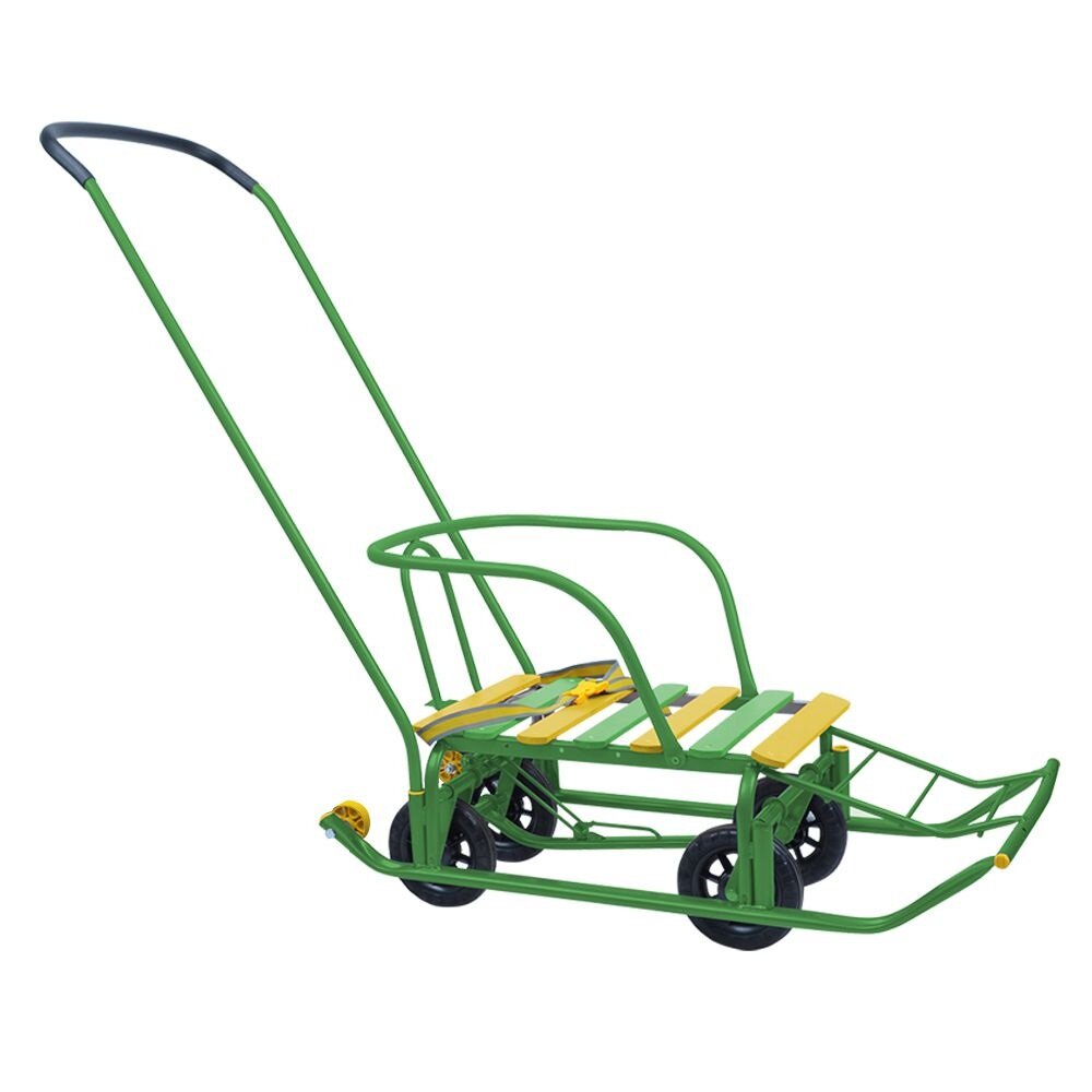 Санки Nika Тимка 5 Универсал зеленый, спинка, толкатель, колеса