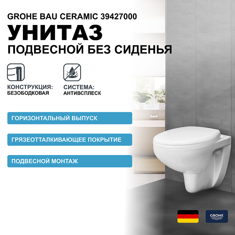 Подвесной унитаз GROHE Bau Ceramic 39427000