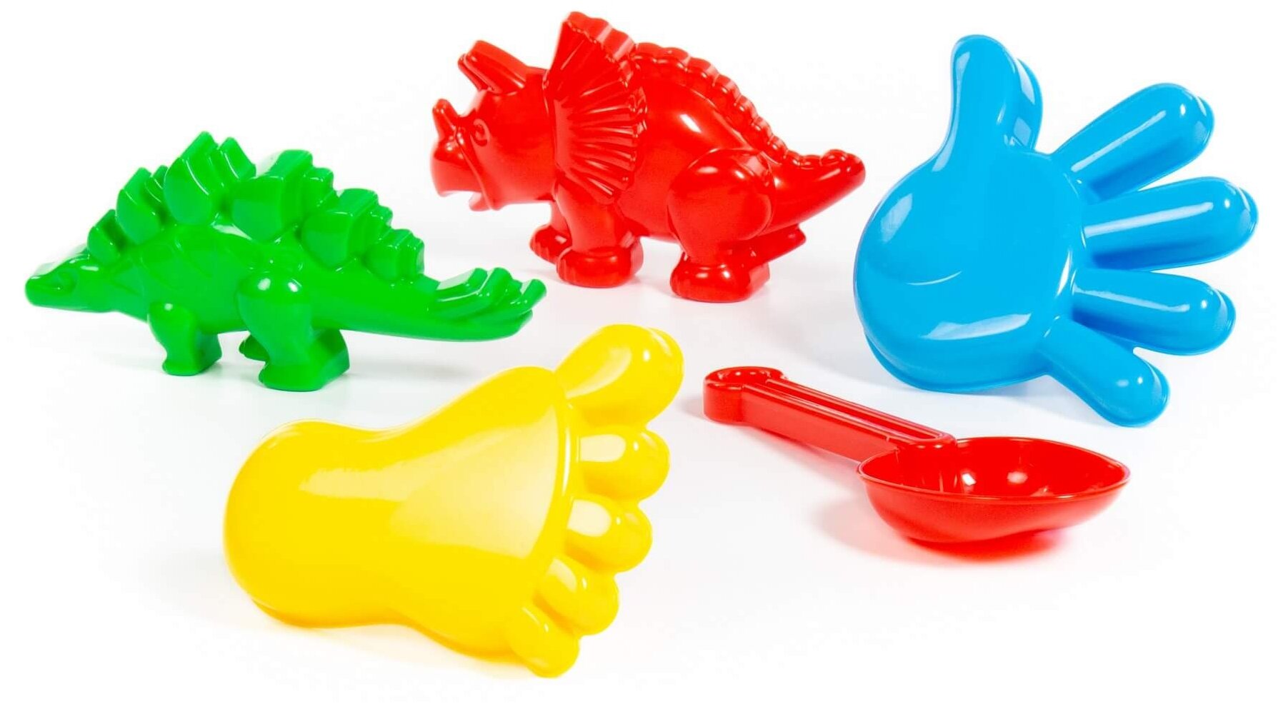 Набор №371: совок №7, формочки (динозавр №1 + динозавр №2 + ладошка + ножка) (в пакете)