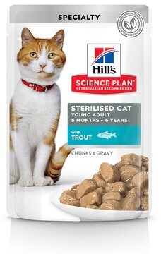 Влажный корм Hill's Science Plan для молодых стерилизованных кошек и кастрированных котов, пауч с форелью в соусе, 85 г-12 шт.