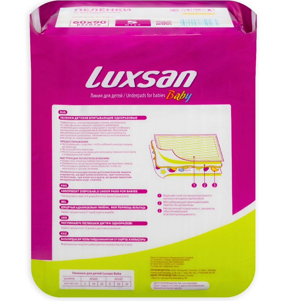 Одноразовая пеленка Luxsan Baby 60х90, 5 шт.