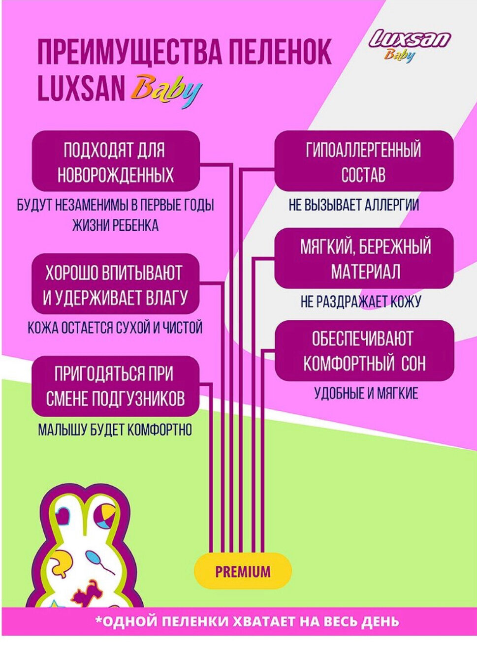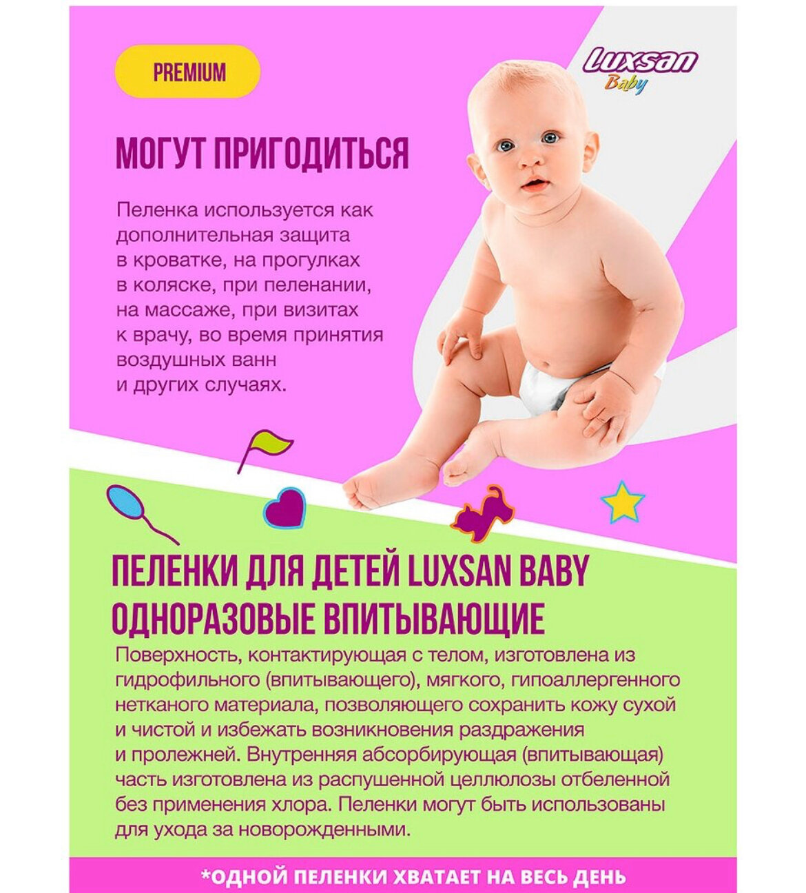 СохранитьПеленки одноразовые детские Luxsan Baby PREMIUM 60х90, 10 шт. интересное: