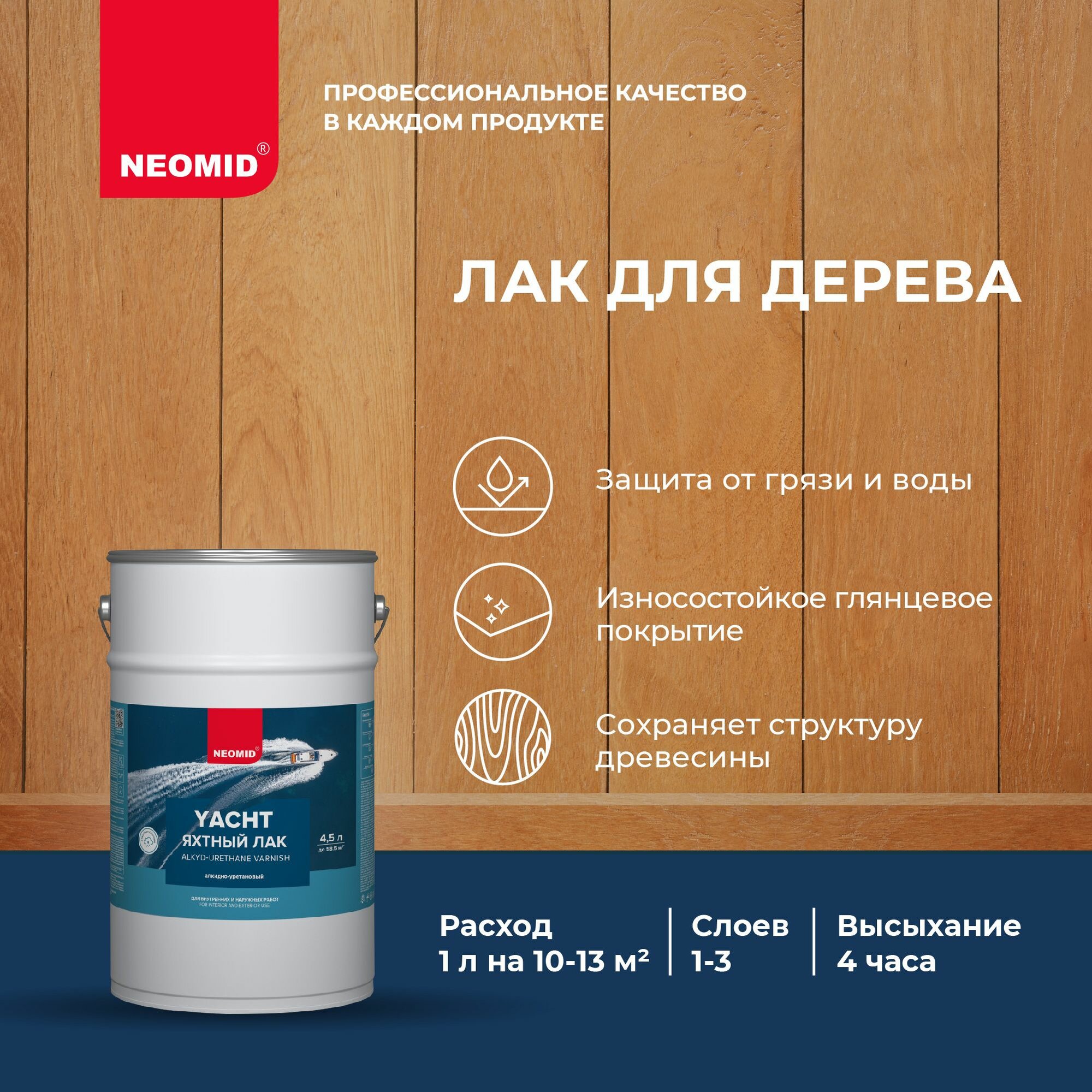 Купить Лак Яхтный Neomid Yacht 4.5л Алкидно-Уретановый, Глянцевый, Износостойкий / Неомид Яхт.