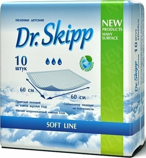 Пеленки одноразовые Dr.Skipp Soft Line, р-р 60 x 60 10шт.