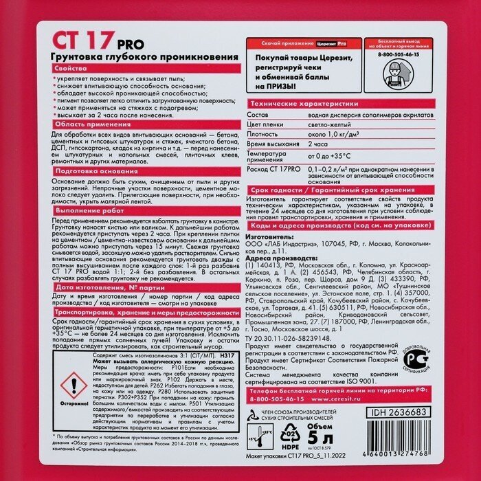 Ниже Вы можете прочитать отзывы на Грунтовка Церезит CT17, 5л, ознакомится с подробными характеристиками, посмотреть интересные обзоры и фотографии на Грунтовка Церезит CT17, 5л.