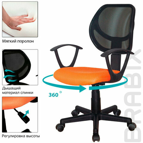 Кресло офисное Brabix Flip MG-305, черный/оранжевый