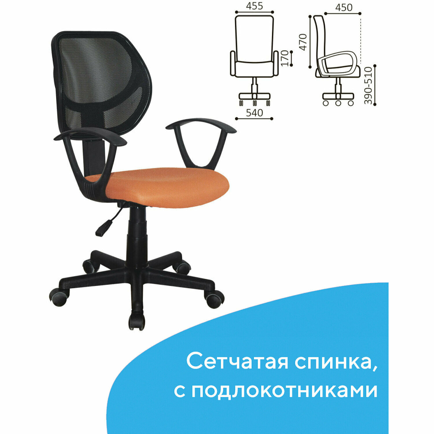 Кресло BRABIX Flip MG-305, на колесиках, сетка/ткань, черный/оранжевый [531920]
