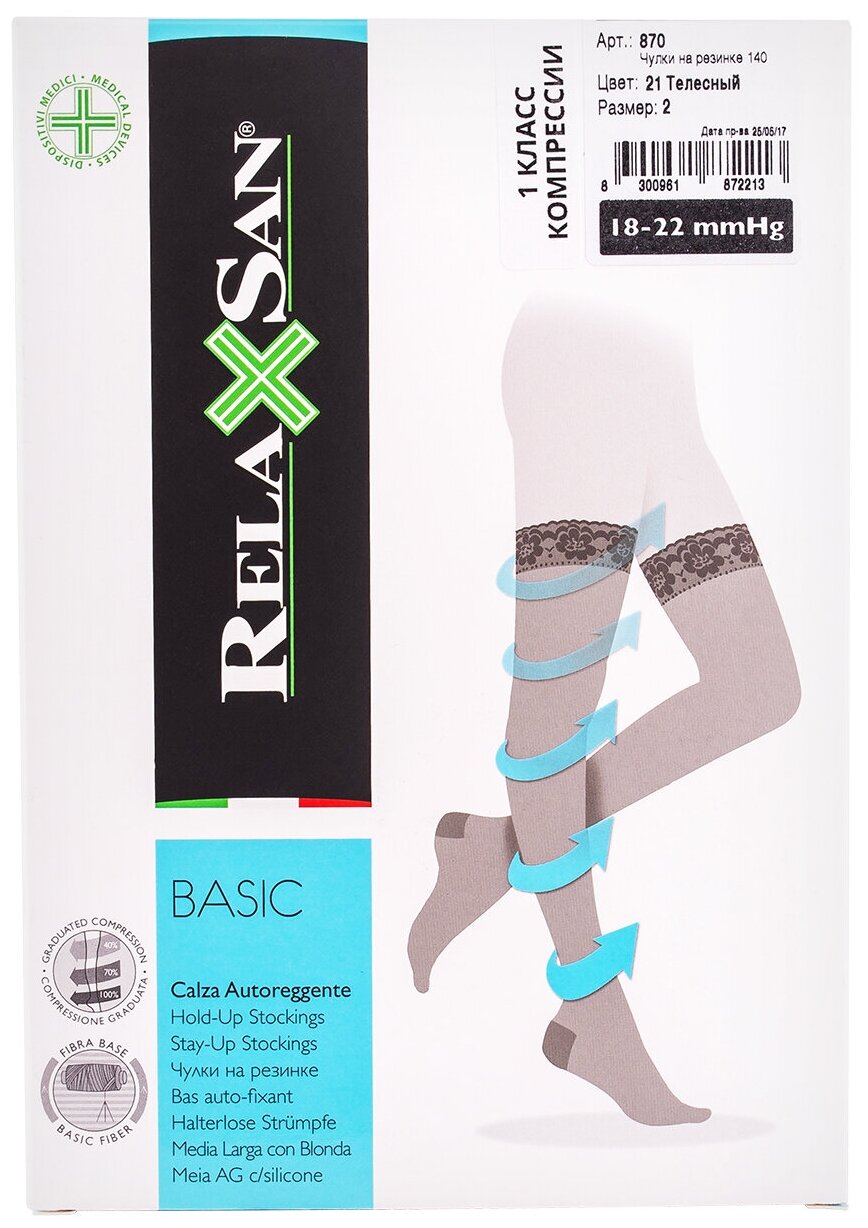 Relaxsan Чулки Stay-Up 140 на резинке 1 кл комп р.2 телесный, 1 шт