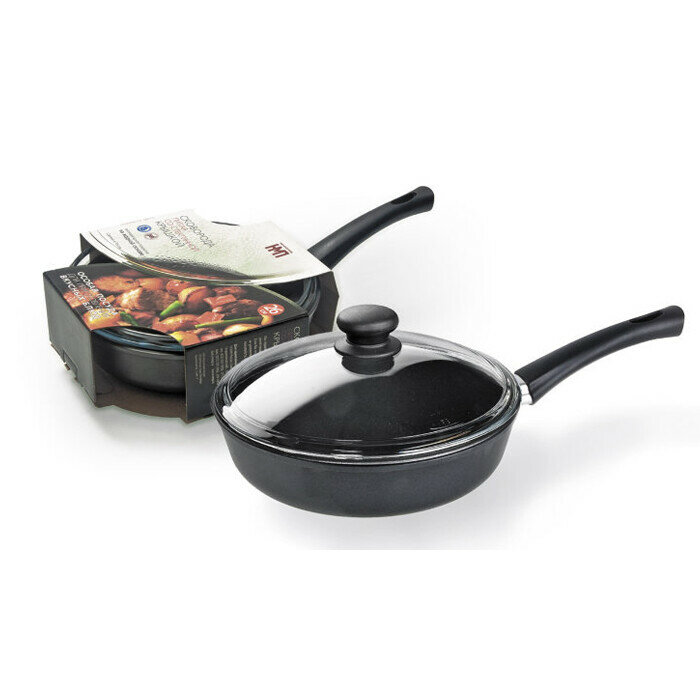 Сковорода НМП 7728 28 ПР литая со стекл. крышкой
