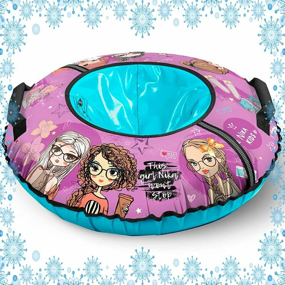 Санки-ватрушка Nika, Селфи, 85 см, 90 кг, с буксировочным тросом, с ручками, голубой, розовые, ТБ3К-85/СФ