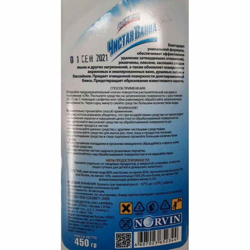 СохранитьСвежинка спрей для ванной Чистая ванна, 0.45 л интересное: