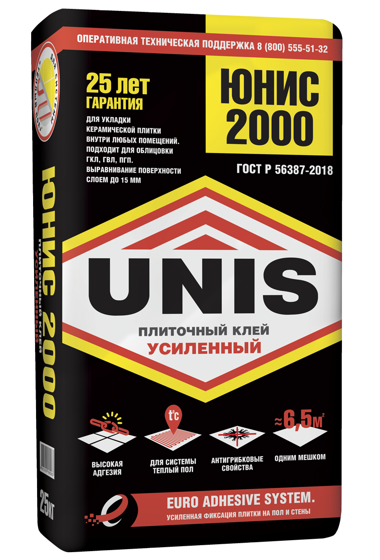 Юнис 2000 клей плиточный (25кг) / UNIS 2000 клей для плитки и камня (класс С1) (25кг)