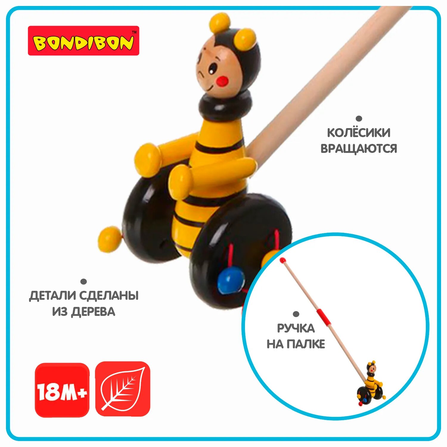 СохранитьКаталка Bondibon "Пчелка" с ручкой, дерево (ВВ1110) интересное: