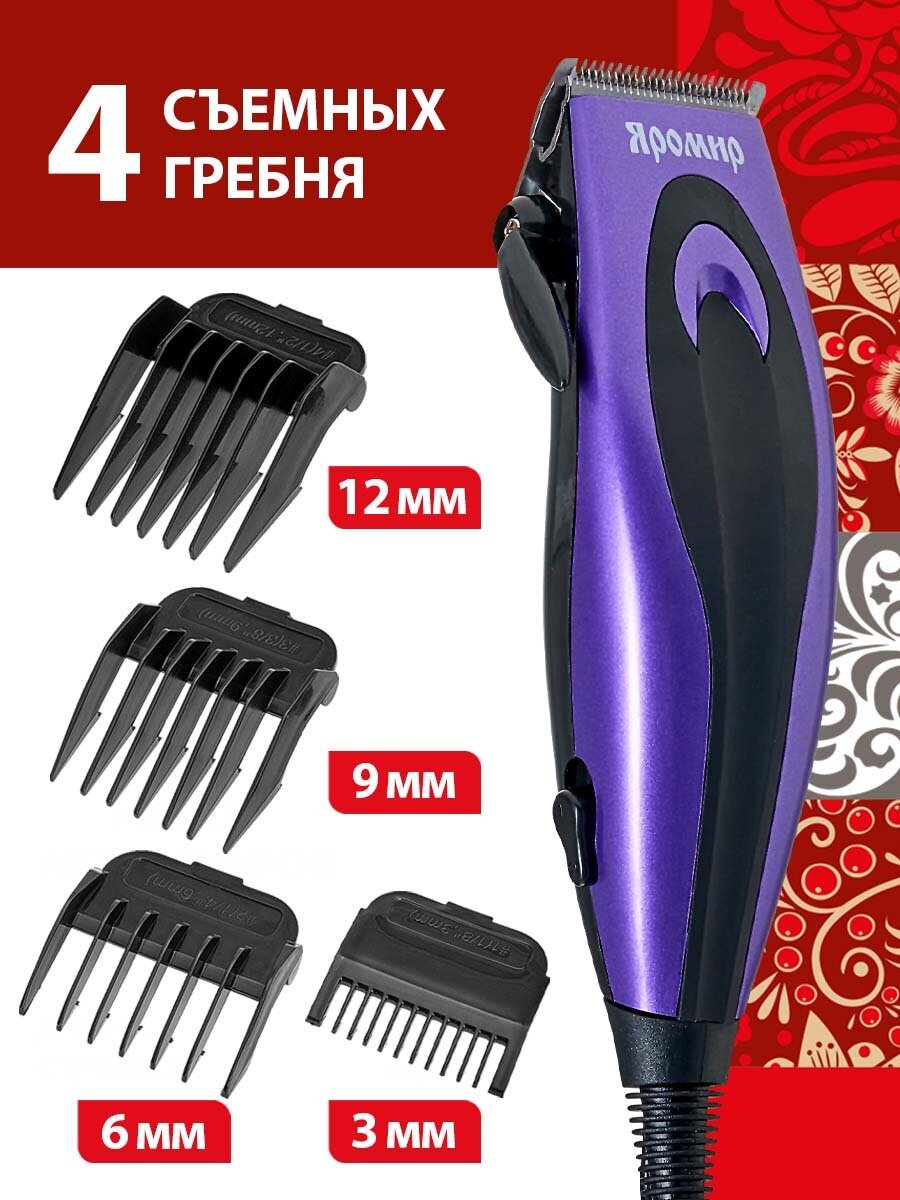 Машинка для стрижки яромир ЯР-703 фиолетовый, 10Вт, 4 съемных гребня