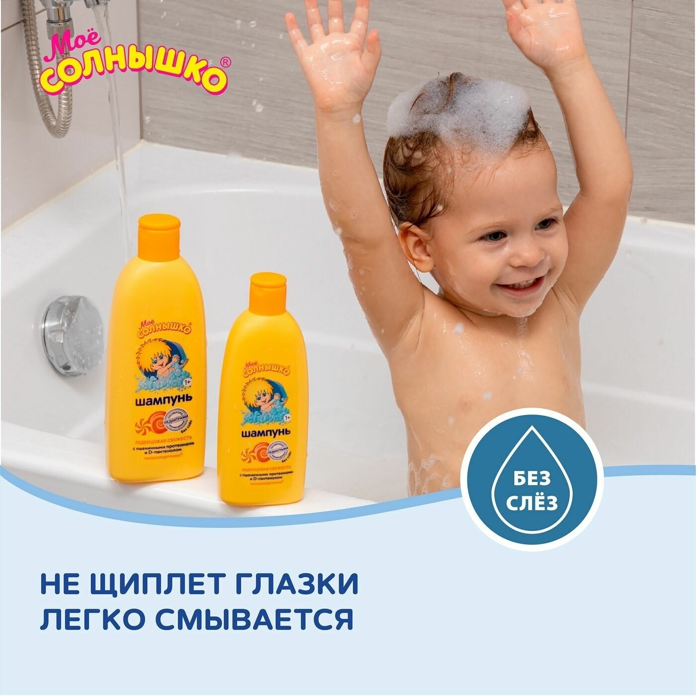 Шампунь детский Леденцовая свежесть с пшеничными протеинами и пантенолом, 400 мл, Моё солнышко, шампунь для детей
