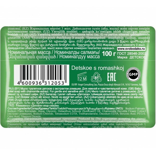 СВОБОДА Свобода (Svoboda) Детское туалетное мыло Свобода для нежной и чувствительной кожи 100 гр