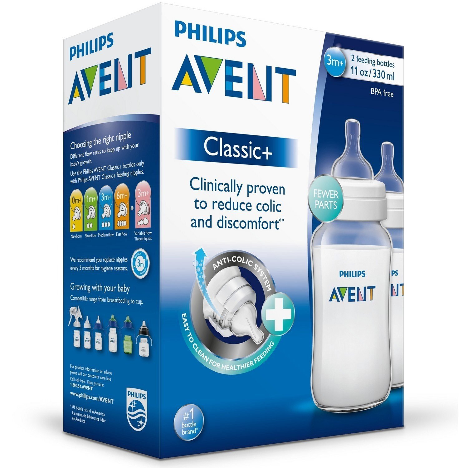 Philips AVENT Бутылочки полипропиленовые Classic+ SCF566/27 330 мл, 2 шт., с 3 месяцев, бесцветный интересное: