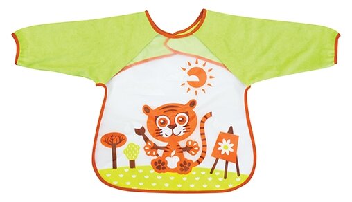 Lubby Нагрудник с рукавами "В мире животных", зеленый/оранжевый интересное: