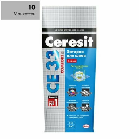 Затирка Ceresit "Super СE 33", цвет: манхеттен (10), 2 кг