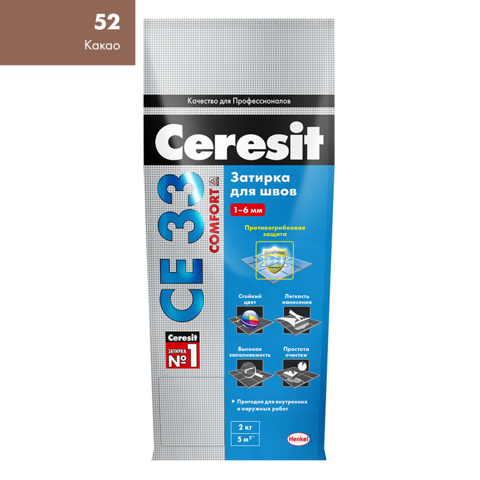 Купить Затирка Ceresit CE 33 Comfort, 2 кг, какао 52