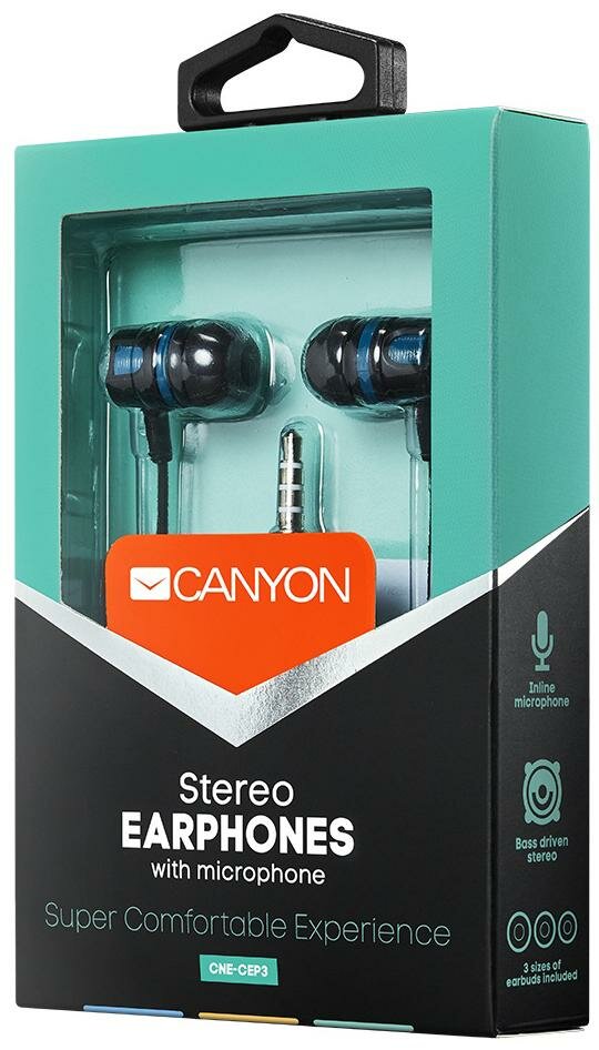 Наушники Canyon CNE-CEP3, черный/аквамарин