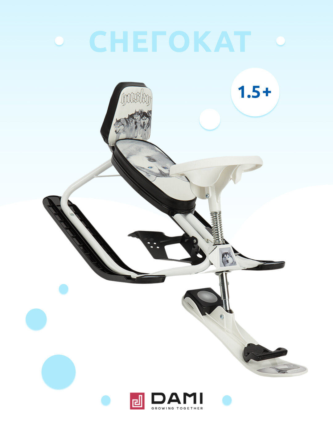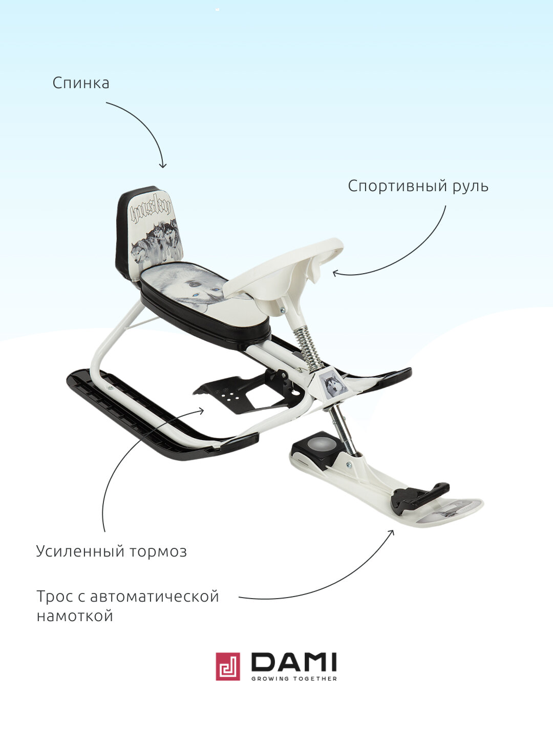 Дэми Снегокат растущий Kiddy LUX «Хаски», СНК.10-02, со спинкой, цвет белый/чёрный