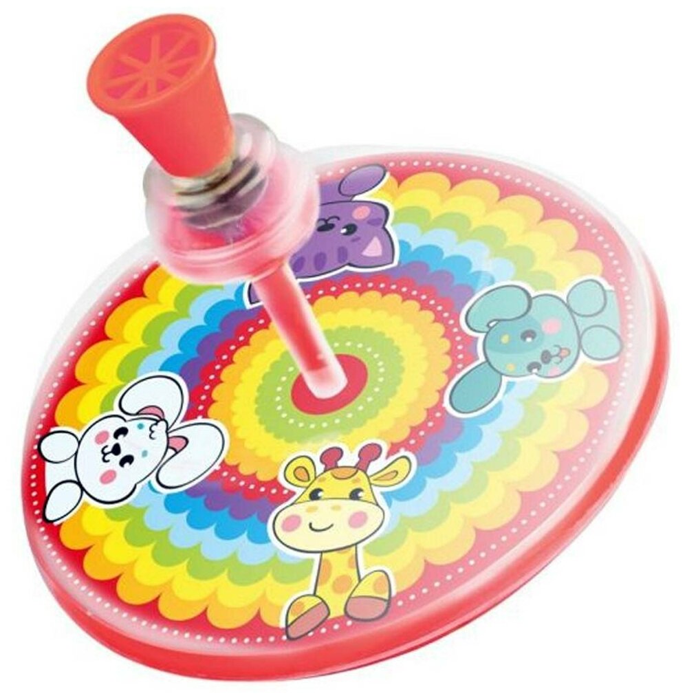 Но если не принимать это во внимание, яркая игрушка с изображением животных (жираф, заяц, собака, кошка). На ровной поверхности крутится долго и бесшумно, специально засекла - на ровной поверхности крутится 45 секунд, полная остановка на 52-й секунде. По мне, так это немало. Как в "что?где?когда?" звуков не издает ))) |
