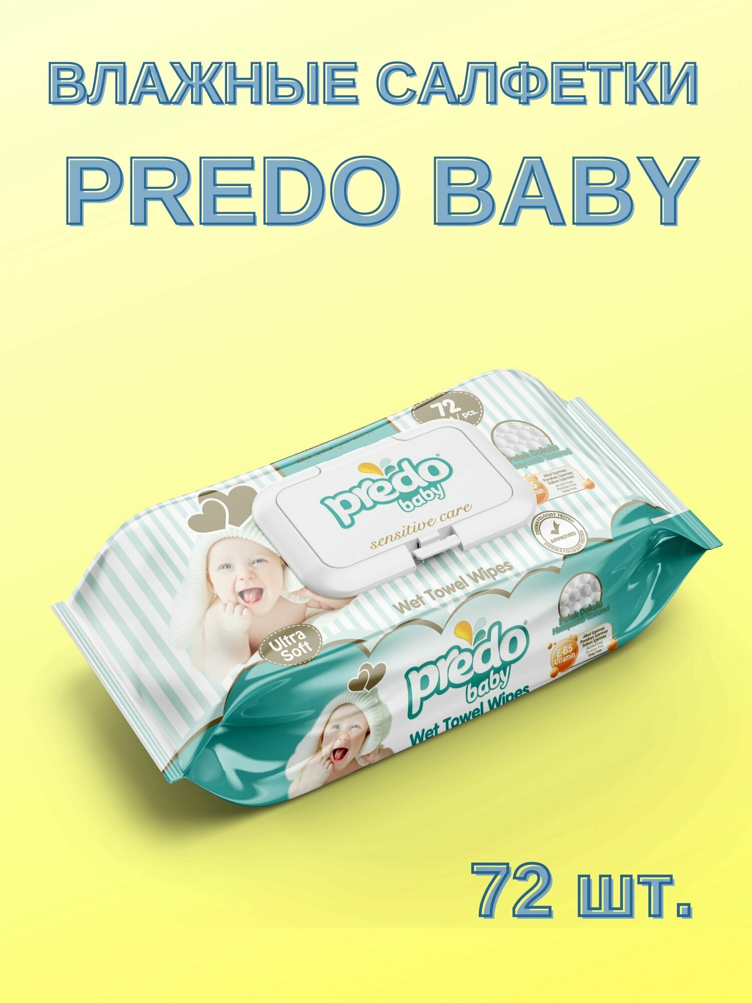 Влажные салфетки Predo Baby, пластиковая крышка, 72 шт.