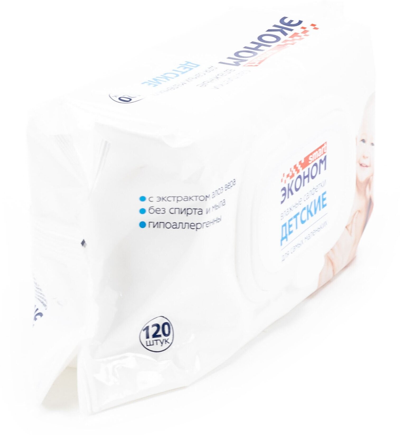 Купить Влажные салфетки Эконом smart Детские с экстрактом алоэ вера, пластиковая крышка, 120 шт., 1 уп.